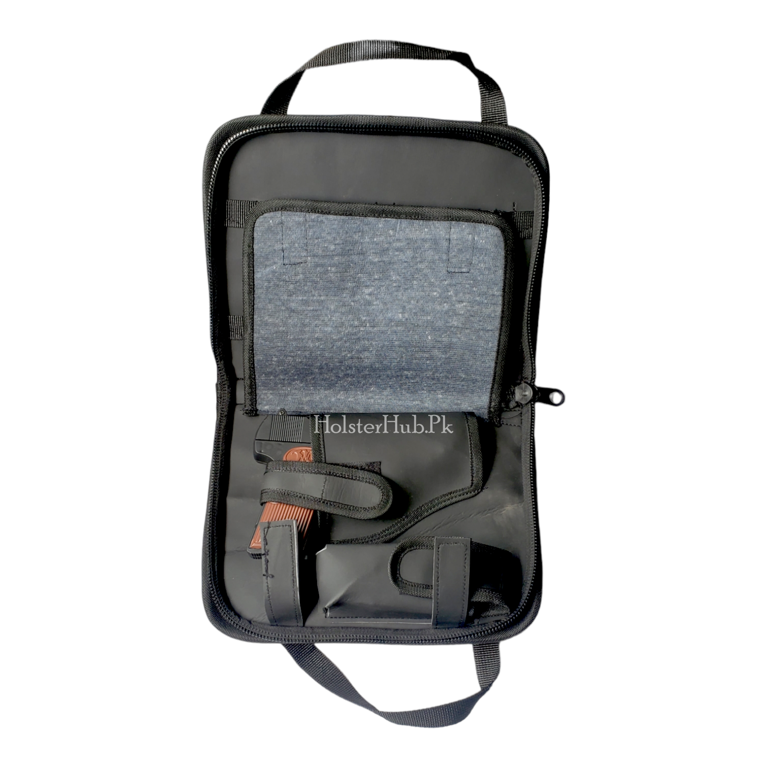 Crafted from premium PU leather, this sleek black pstol bag is designed to keep your wepon and amunition organized, secure, and protected — wherever you go.